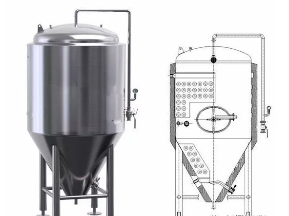 我重點說下100L-5000L以內(nèi)的這種小型密封式的錐形發(fā)酵罐。